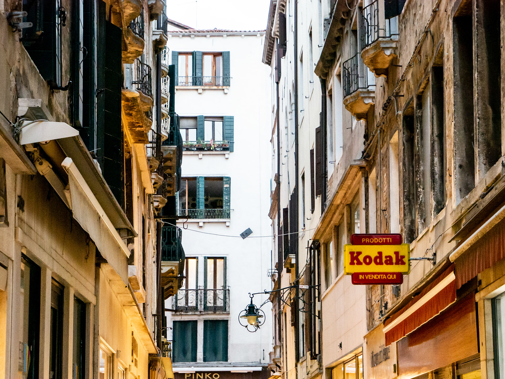 We went to the Rialto Bridge early in the morning to escape the shoulder to shoulder crowds. Of couse the grande cannal was still full of boats, but I made them disapear with a very long shutter speed. 30 Seconds was enough, but in order to do that, I also had to use my ND (Nutral Density) filter. All ND Filters are not made equal. Most of them shift the color quite a bit and most of those color shifts are ugly. More expensive often means lesss color shift, but the ICE ND Filter is not expensive at all and has very little color shift. I highly recomend it.